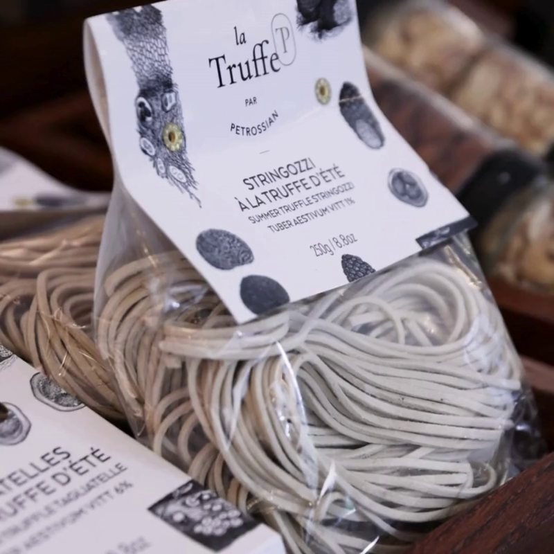 Découvrez les stringozzi à la truffe d'été. Les stringozzi (ou strangozzi) sont une variété de pâtes longues, rectangulaires, essentiellement consommée dans la région de l'Ombrie en Italie. Ces stringozzi contiennent 1 % de truffe d'été. Nous vous recommandons une cuisson de 12 minutes dans de l'eau bouillante salée avant de les servir avec du beurre et du parmesan.