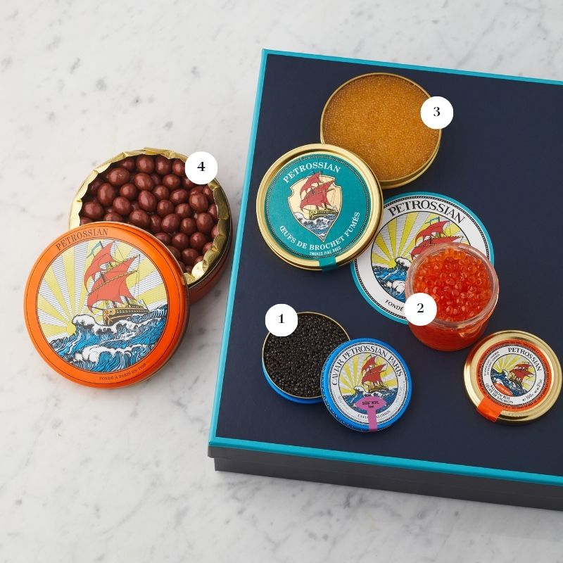 Le coffret Pâques en famille contient une généreuse sélection d'œufs de la maison Petrossian pour célébrer Pâques. Il est composé de 50 g de caviar Baeri Baïka® Royal, 100 g d'œufs de saumon sauvage, 125 g d'œufs de brochet fumés et 350 g de perles de chocolats au caramel. Vous pouvez déguster le caviar et les œufs de saumon à la petite cuillère, sur des blinis avec un peu de crème fraîche, sur une pomme de terre ou encore en les incorporant à une recette.